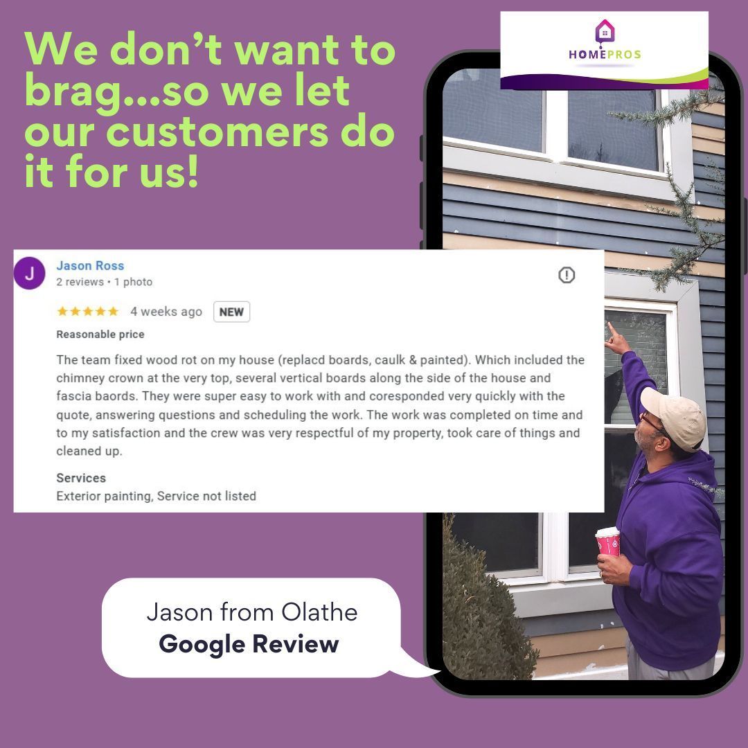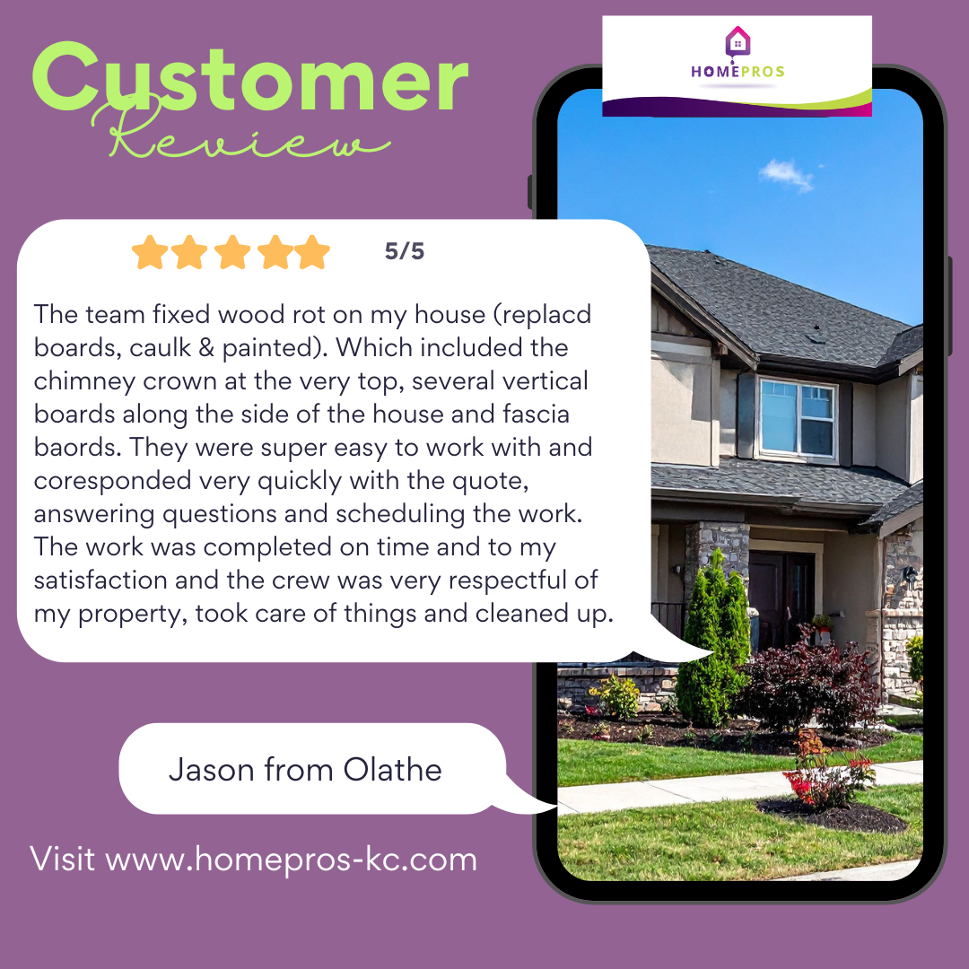 Are you noticing soft, crumbling, or discolored wood on your home’s exterior? Home Pros Painting provides expert wood rot repair for trim, siding, windows, doors, and more throughout the Kansas City metro area. Whether you’re prepping your home to sell, restoring damage, or upgrading your exterior, we deliver professional repairs with a 2-year hassle-free exterior painting warranty.